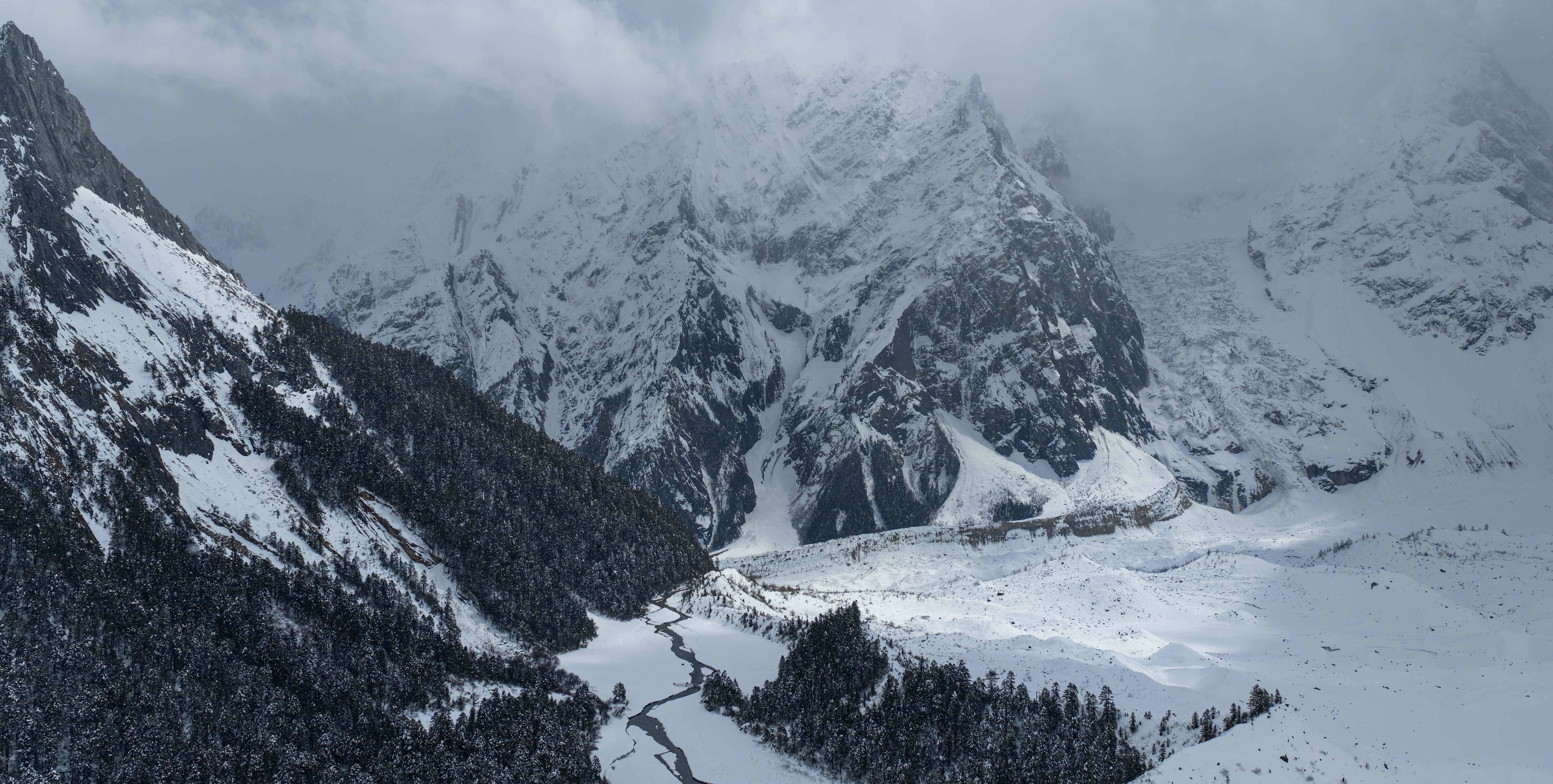 大雪覆盖的白普隆沟牧场(3月21日摄,无人机照片)。
