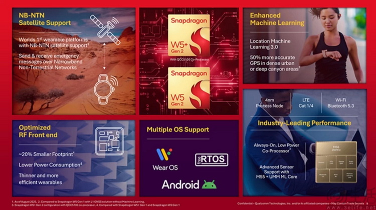要知道,这种现象在过去是没有出现过的。比如在上代的(骁龙W5 Gen2)官方宣传图中就能看到,它明显是“专为”智能手表而设计,各种产品功能和形态的展示都没有提及智能手表之外的设备信息。