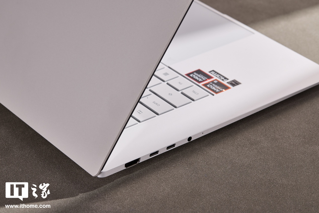 接口方面,机身左侧配备 1 个 HDMI2.1 TMDS 接口,2 个全功能 40G 速率的 USB4 Type-C 接口,1 个 3.5mm 音频接口。
