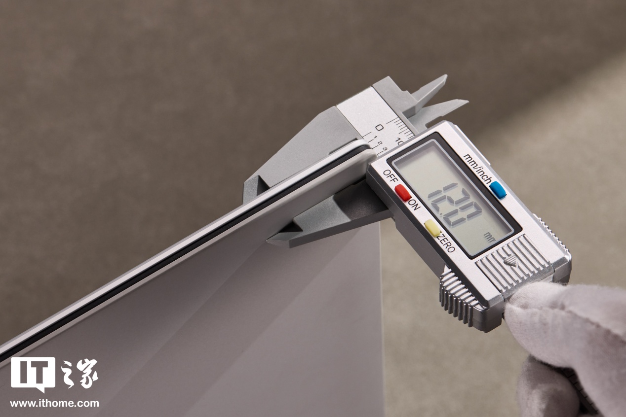 机身线条方正利落,A 壳整体包裹住屏幕面,边缘四周做了微曲倒角过渡,白中微微带灰的雪域白低饱和配色,凸显质感上的高级。