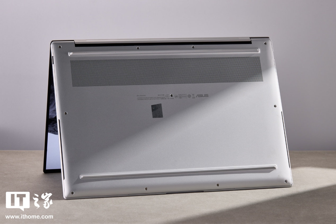 A 面一如既往采用了高科技陶瓷铝材质,表面触感温润细腻,亲肤疏水不沾指纹。正面居中设计的高亮雕刻工艺 ASUS Zenbook 产品 Logo 回归,视觉上更加干净、简约。